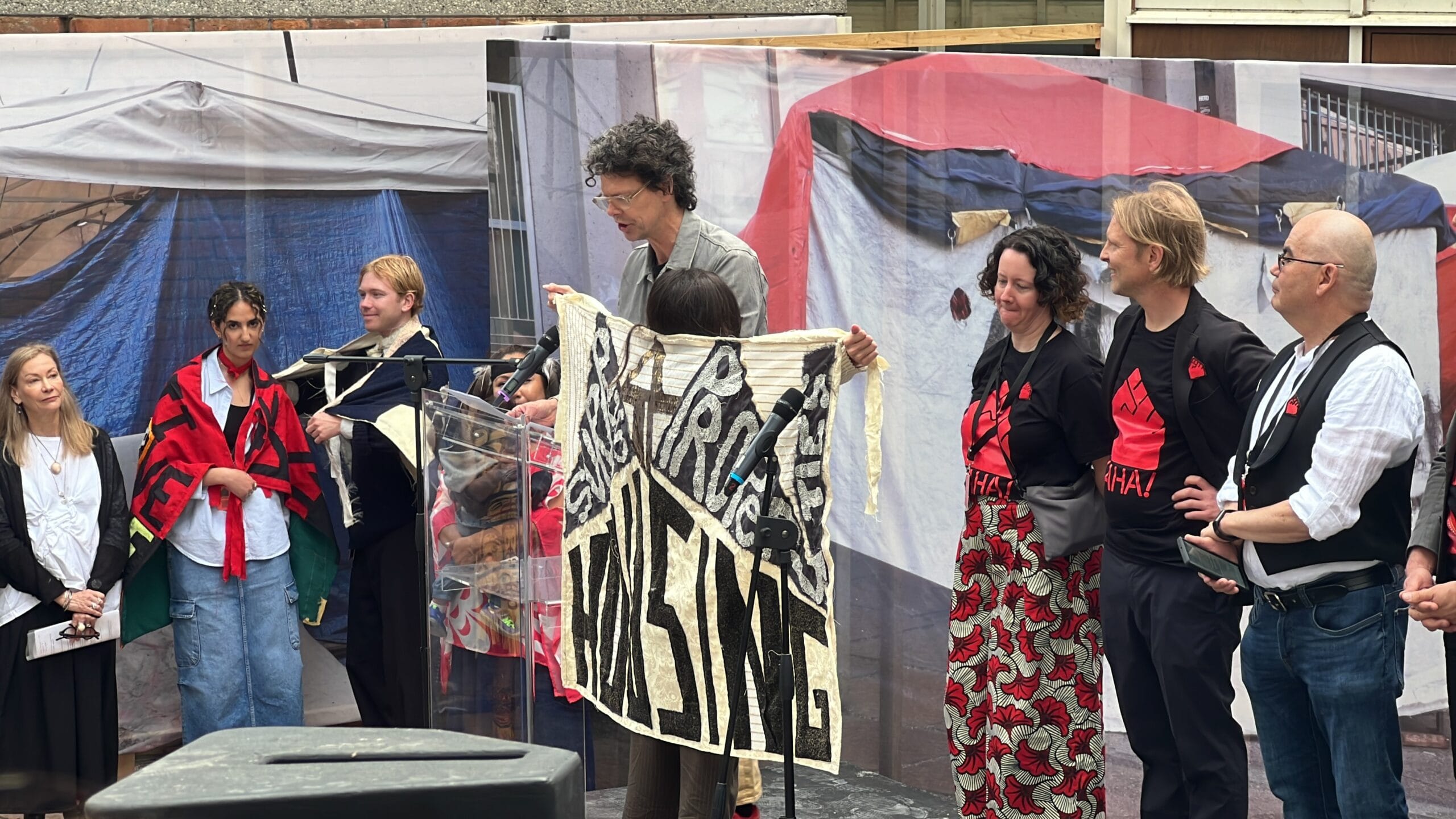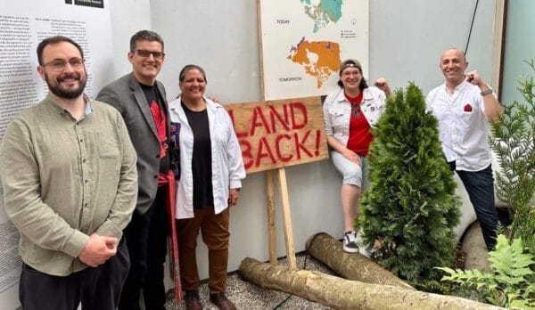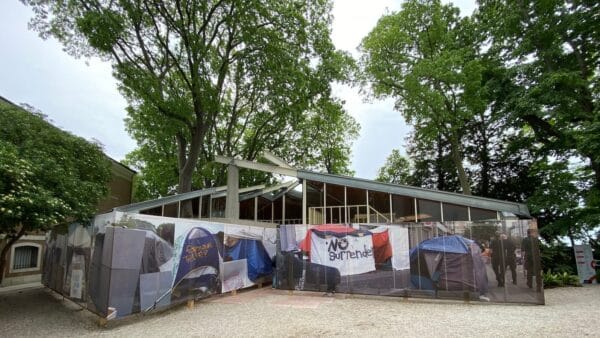 In May 2023, the One House Many Nations team, as part of the Architects Against Housing Alienation – Not For Sale! campaign, showcased our ‘Housing As Cosmology’ installation for the Canadian Pavillon during the opening of the 2023 Biennale Architettura in Venice, Italy. The exhibition is a protest and a call to action that runs until November 2023.