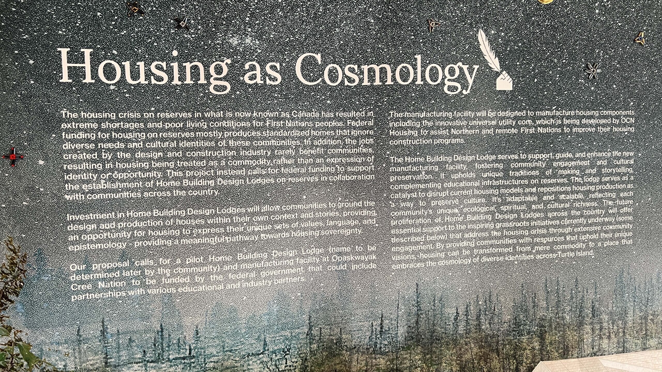 We demand that necessary funding be directed towards a pilot Home Building Design Lodge (full name to be determined later by the community) and manufacturing facility at Opaskwayak Cree Nation (OCN) that could include partnerships with various education and industry partners. The manufacturing facility will be designed to manufacture housing components including the innovative universal utility core, which is being developed by OCN Housing to assist Northern and remote First Nations to improve their housing construction programs. However, this project transcends the manufacturing facility. It introduces the development of a Home Building Design Lodge as a new community centre that is woven into existing educational infrastructure. The Design Lodge establishes a hub for multigenerational teachings and learning about community-led design and making. The centre is a catalyst to disrupt current housing delivery models and allows the community to self-determine their housing future over generations. Moreover, it is a pilot for other communities that is scalable and adaptable, depending on that community’s needs and capacities. This project promotes housing as cosmology, not commodity. (AAHA.ca)